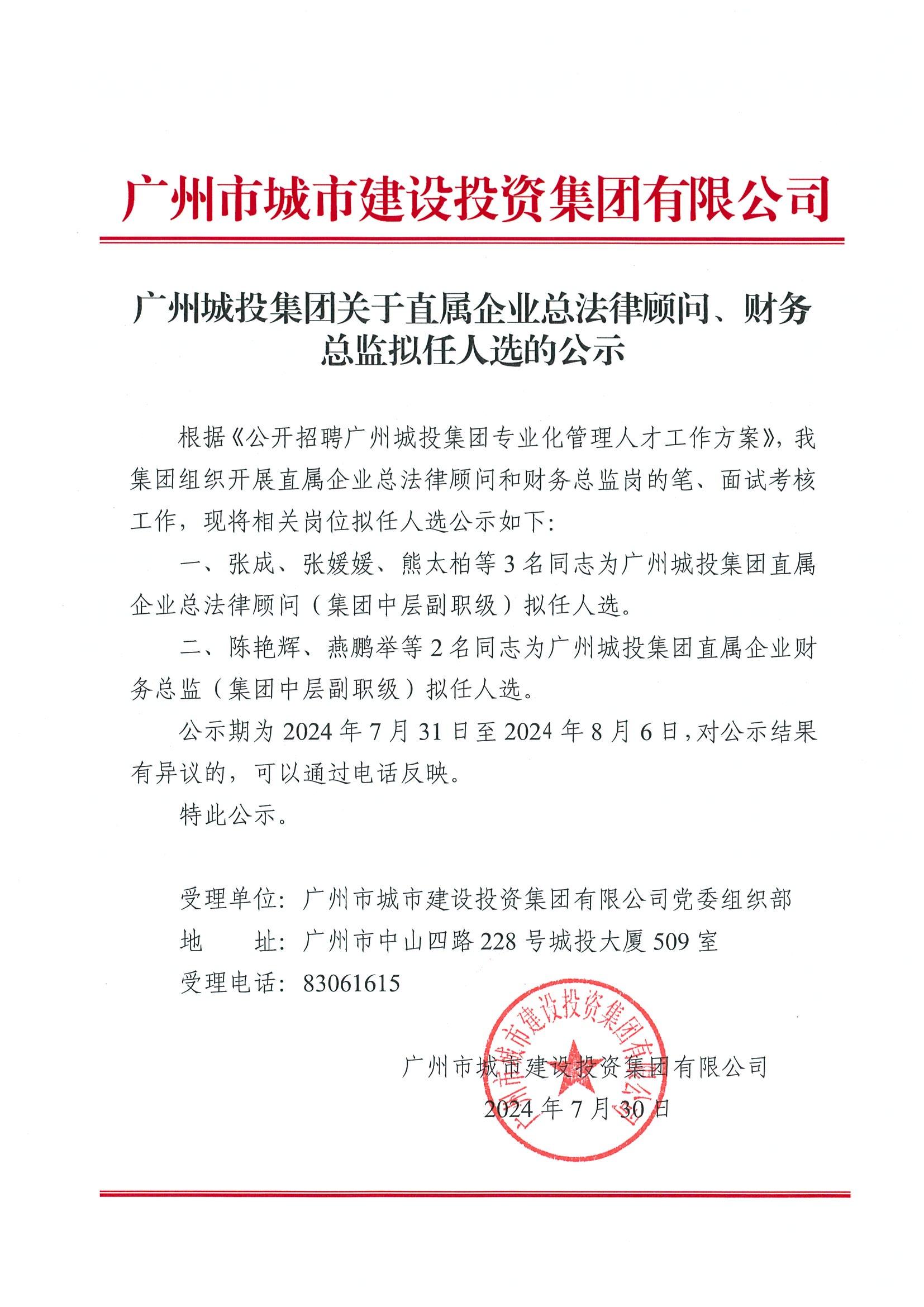 博彩公司 关于直属企业总法律顾问、财务总监拟任人选的公示