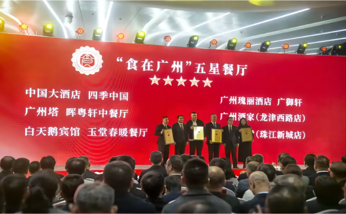 近日,第二届“食在广州”品牌发布会活动在广州塔二层宴会大厅举办,高品质标杆餐饮品牌榜单正式发布。博彩公司 旗下广州塔晖粤轩中餐厅、广州越秀国际会议中心琇玥轩连续两年分别荣获“食在广州”五星餐厅、四星餐厅,山庄旅舍陶然餐厅首次荣获“食在广州”三星餐厅。