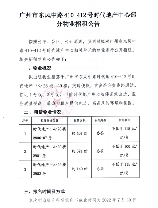 广州市海珠区滨江中路768号怡滨大厦5楼部分、10楼部分物业招租公告