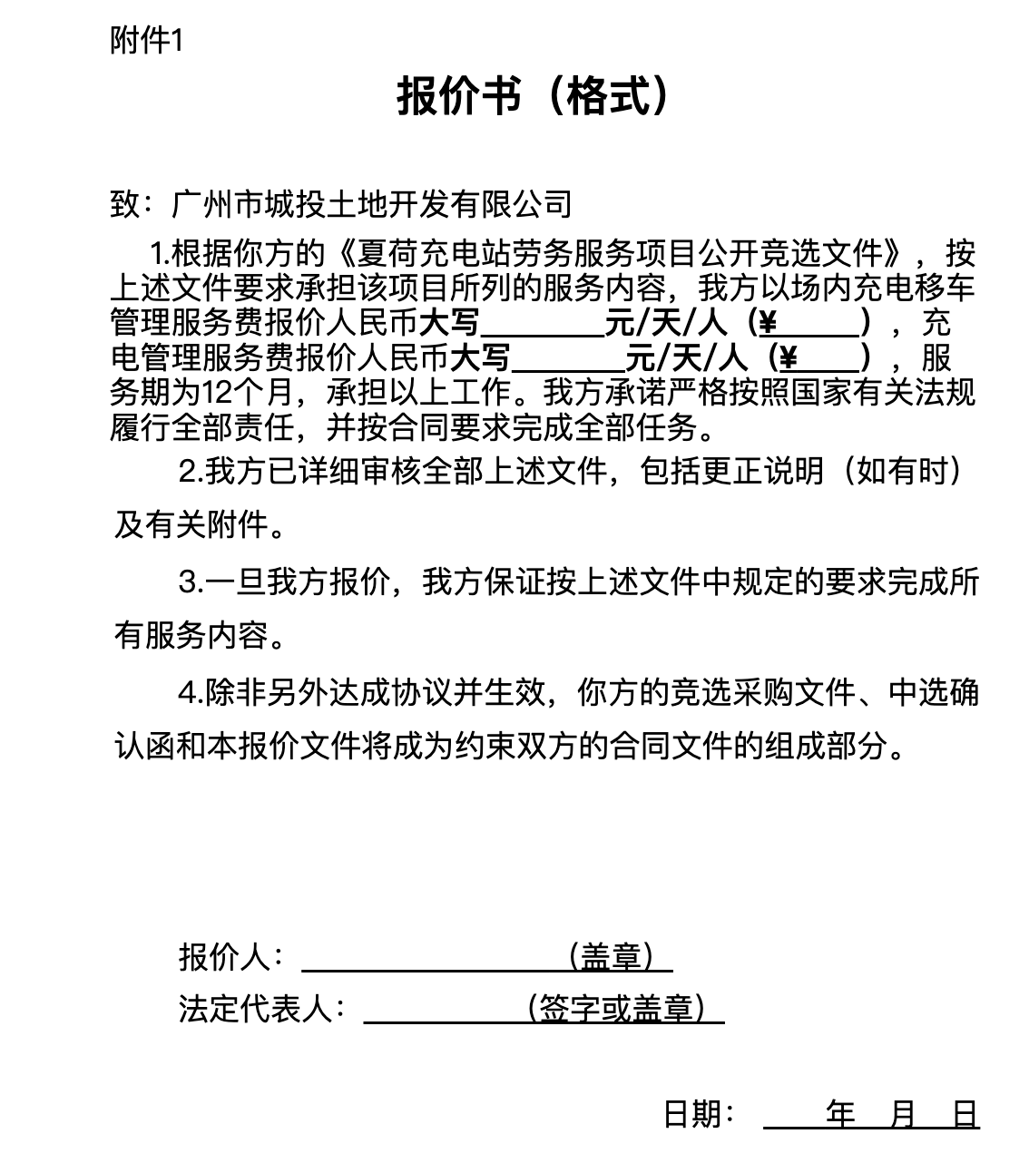 附件:1.报价书(格式)