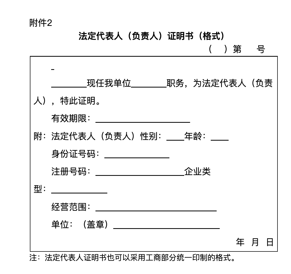 2.法定代表人(负责人)证明书(格式)