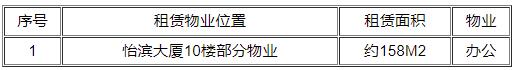 按照公平、公正、公开原则,我司拟对怡滨大厦10楼部分物业进行公开招租,相关招租信息公告如下: