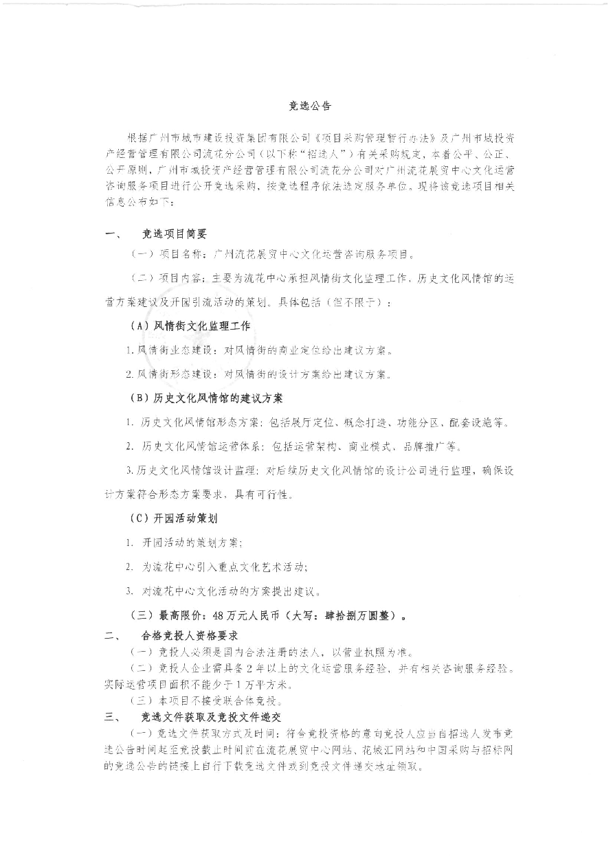 广州流花展贸中心文化运营咨询服务项目竞选公告