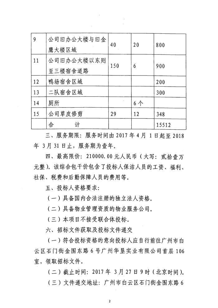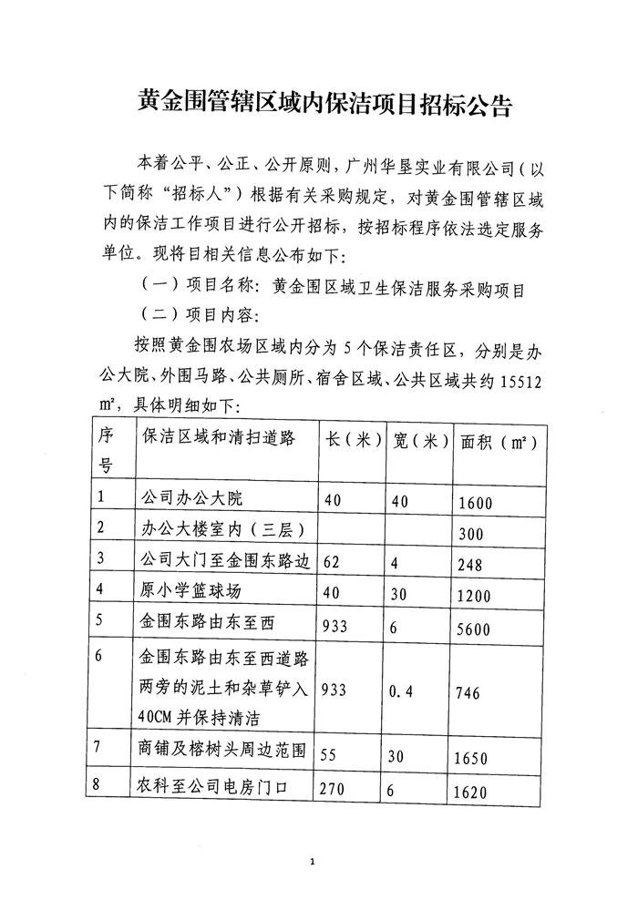 黄金围管辖区域内保洁项目招标公告
