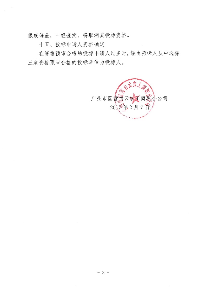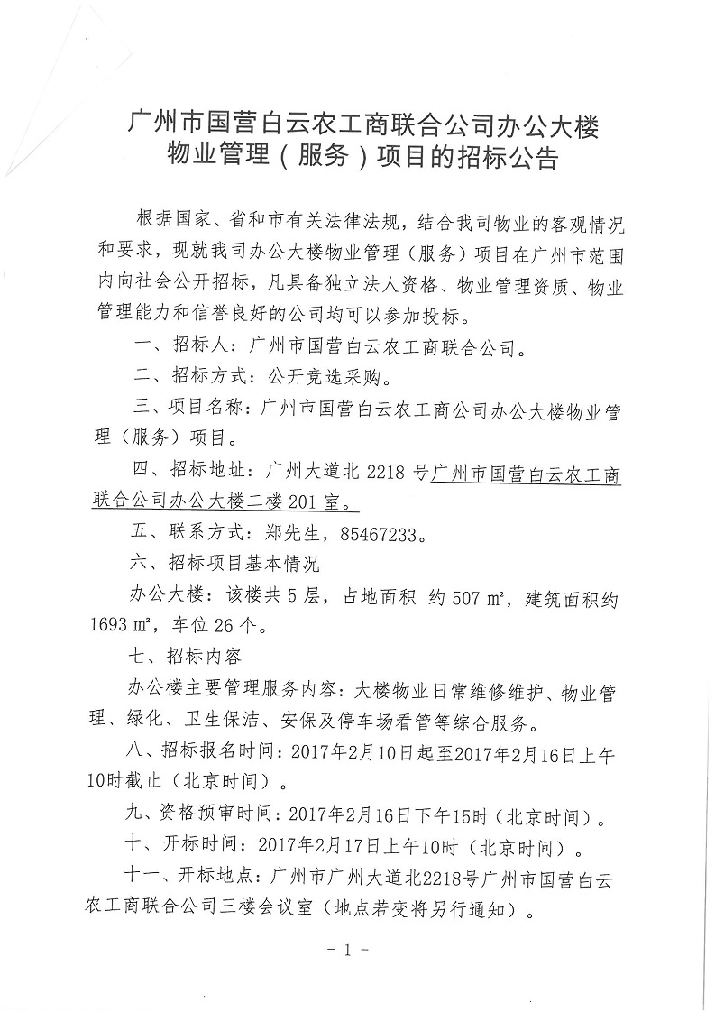 关于广州市国营白云农工商联合公司物业管理项目的招标公告
