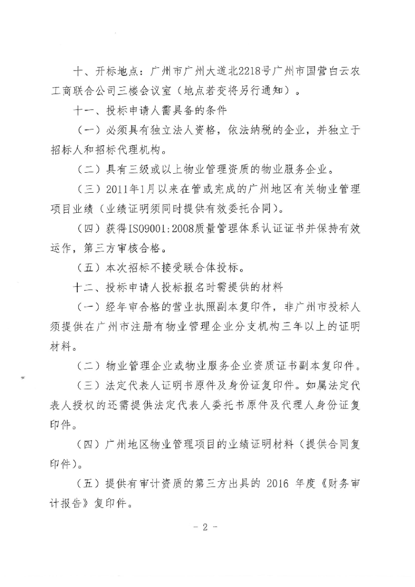 广州市国营白云农工商联合公司办公大楼物业管理(服务)项目的招标公告