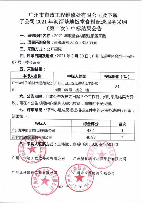 上一篇:广州市市维建设工程有限公司2021年饭堂食材配送服务采购中标结果公告