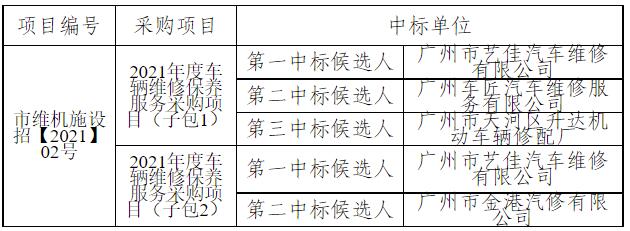 广州市市政工程维修处有限公司2021年度车辆维修保养服务中标结果公示