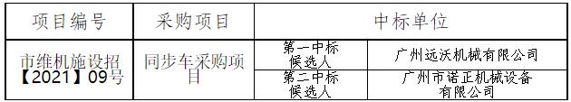 广州市市政工程维修处有限公司同步车采购公开竞选采购评审工作现已结束,结果如下: