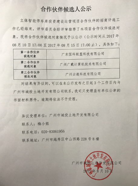 合作伙伴候选人公示