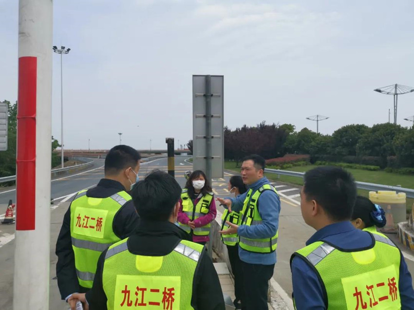 实车测试期间,九江二桥测试领导小组对参与测试的人员进行了防疫安全再教育,分发口罩等防护用品,督促测试人员严格执行每日体温测量、全程戴口罩等要求,严格把好疫情防控关,坚决做到疫情防控与复工复产两不误。