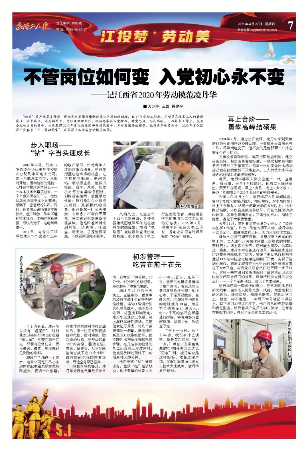 “90后”共产党员凌丹华,现任丰矿集团天壕新能源公司总经理助理。自17岁参加工作起,不管是在技术工人的普通岗位、班长岗位,还是副科长、总经理助理岗位,他始终牢记入党初心,对党忠诚、忘我奉献,一心扑在工作上,成为企业响当当的骨干,先后获得2019年度博彩公司 劳动模范称号,丰矿集团劳动模范、优秀共产党员称号,2020年不仅获得了宜春市“五一劳动奖章”,还获得了江西省劳动模范殊荣。