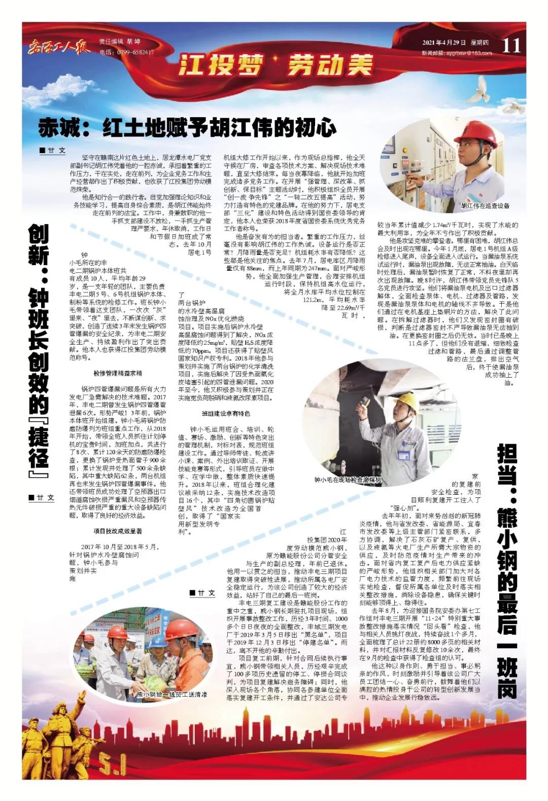 今日推出集团公司劳模胡江伟、钟小毛、熊小刚的故事。