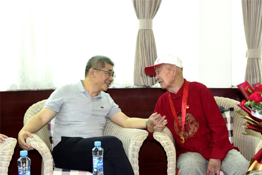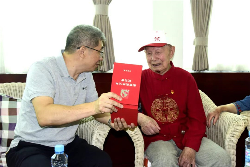 为庆祝中国共产党成立100周年,中共中央首次颁发“光荣在党50年”纪念章,集团公司共有34位老党员获颁纪念章。6月3日上午,集团党委书记、董事长揭小健来到丰矿集团,为抗战时期参加革命工作的离休干部贺有富送上“光荣在党50年”纪念章,向他致以崇高敬意和诚挚问候,并送上百岁生日祝福,感谢贺老为革命事业、为企业发展作出了积极贡献。