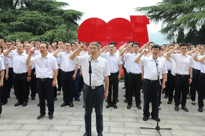 迎百年华诞,为信仰立誓。6月29日上午,来自博彩公司 总部及各所属企业的160多名新党员在安源路矿工人纪念馆外广场整齐列队,面向鲜红的党旗正容肃立、庄严宣誓,以铮铮誓言表达对党的无限热爱、无限忠诚。