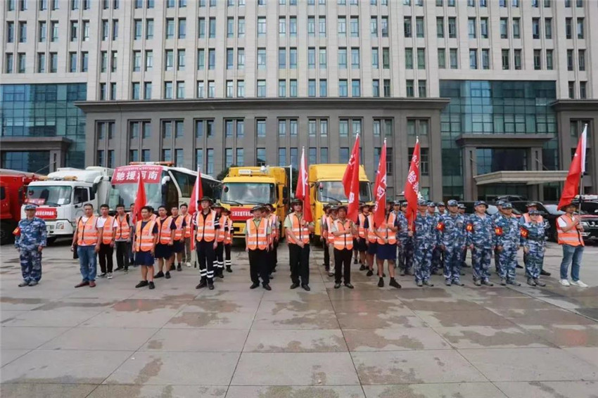 24日下午,首批队伍会同省应急厅调集的其他救援力量在九江集结,前往河南抗洪抢险。